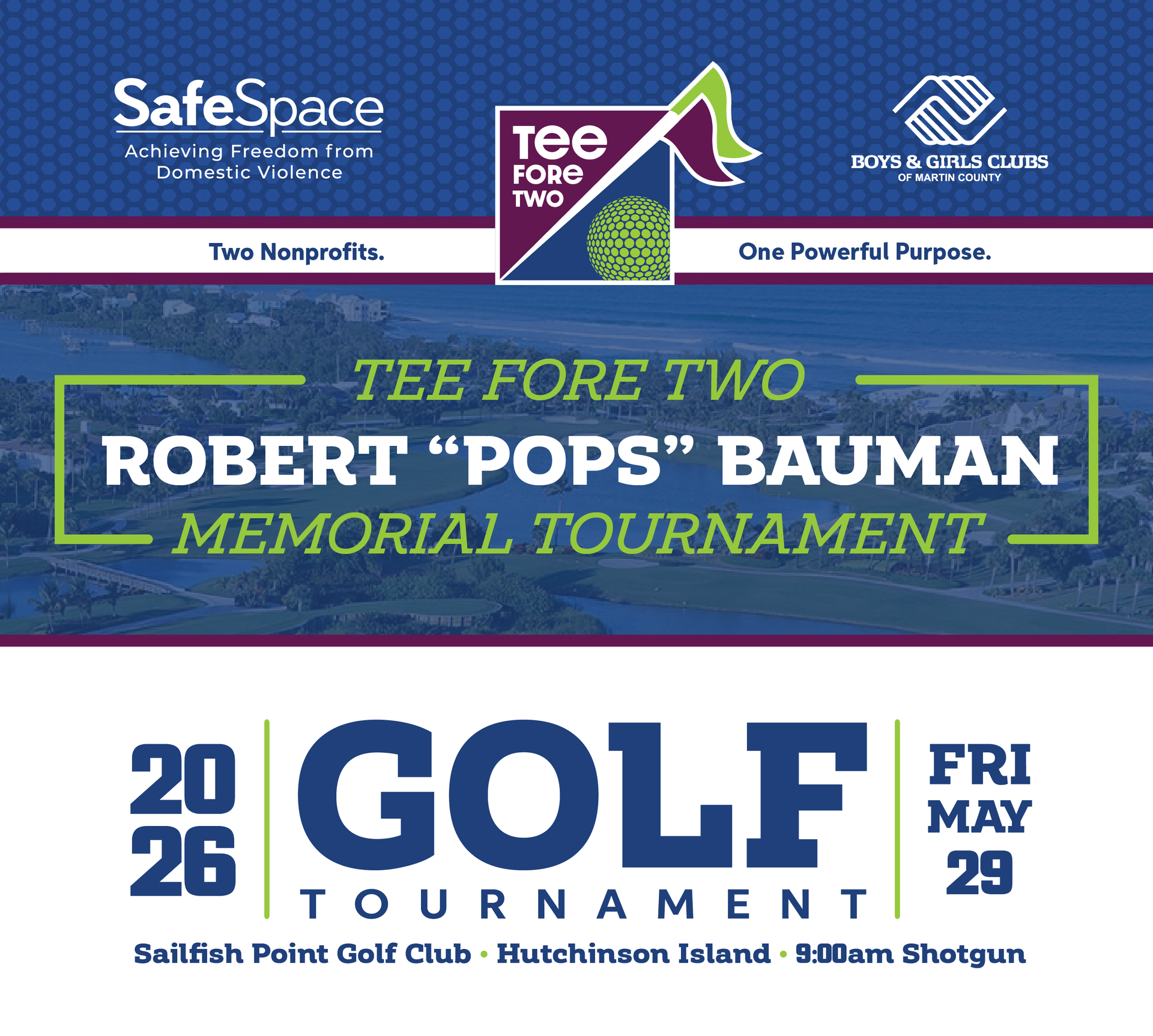 Our Tee Fore Two Golf Tournament is a collaborative effort between the Boys & Girls Clubs of Martin County and SafeSpace, Inc. Set against the stunning backdrop of Sailfish Point Country Club in Stuart, Florida, this event is more than just a day on the greens; it's a union of two incredible nonprofits dedicated to making a difference in the community.